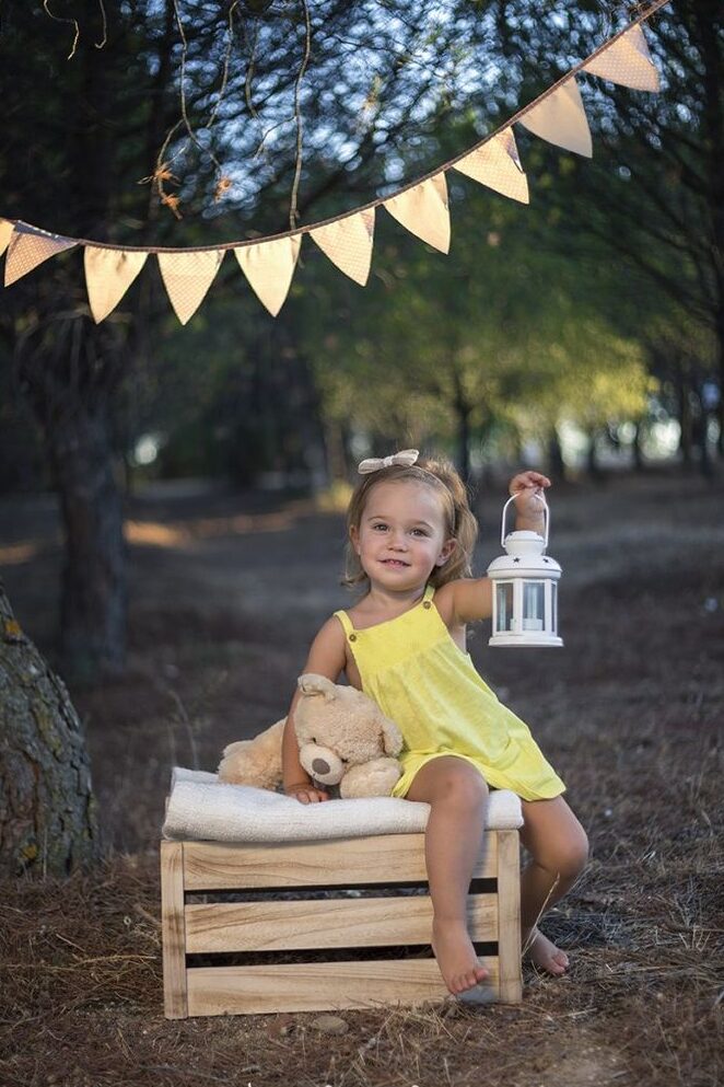 - Organiza un pequeño picnic con mantas, peluches y juguetes en un bonito entorno al aire libre. Las fotos de la niña disfrutando de la comida y el juego serán tiernas y entrañables.